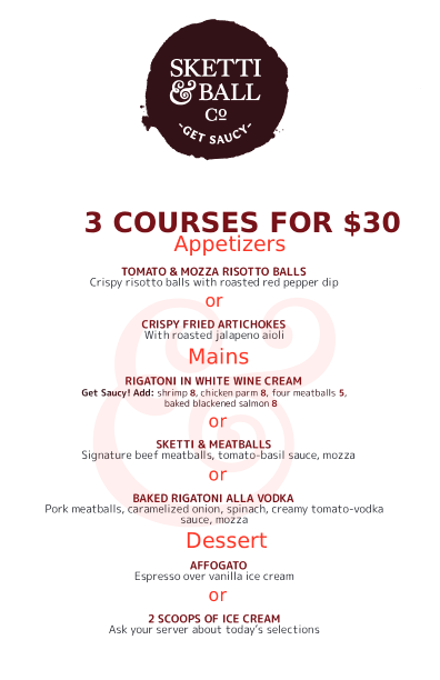 Get saucy at Sketti & Ball Co.! Each package includes one Adult A ticket, and one three-course meal at Sketti & Ball Co., located near the Scotiabank Centre on Argyle Street! Specializing in fresh pasta made daily, choose your courses from a special Tattoo menu. For ultimate flexibility, purchase as many packages as needed for your group, or treat yourself!